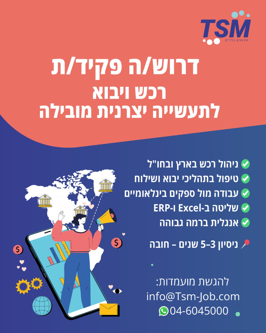 - משרות שתפורות למידותיכם. חסל סדר ראיונות לא קשורים. TSM מתמחה בעולמות התעשייה, הלוגיסטיקה והייצור. אנחנו לא נשלח אתכם למשרות משרדיות שלא מעניינות אתכם, אלא נחבר אתכם למפעלים ומרכזים לוגיסטיים שמחפשים בדיוק את היכולות שלכם.